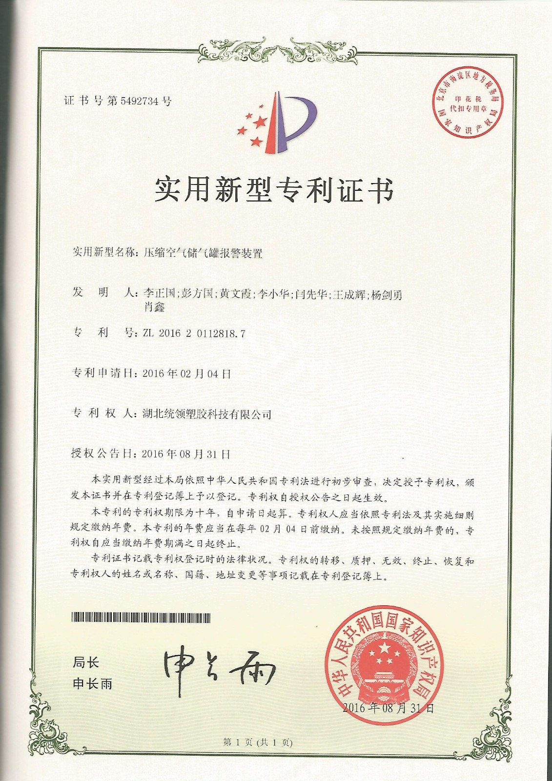 高新技术企业证书